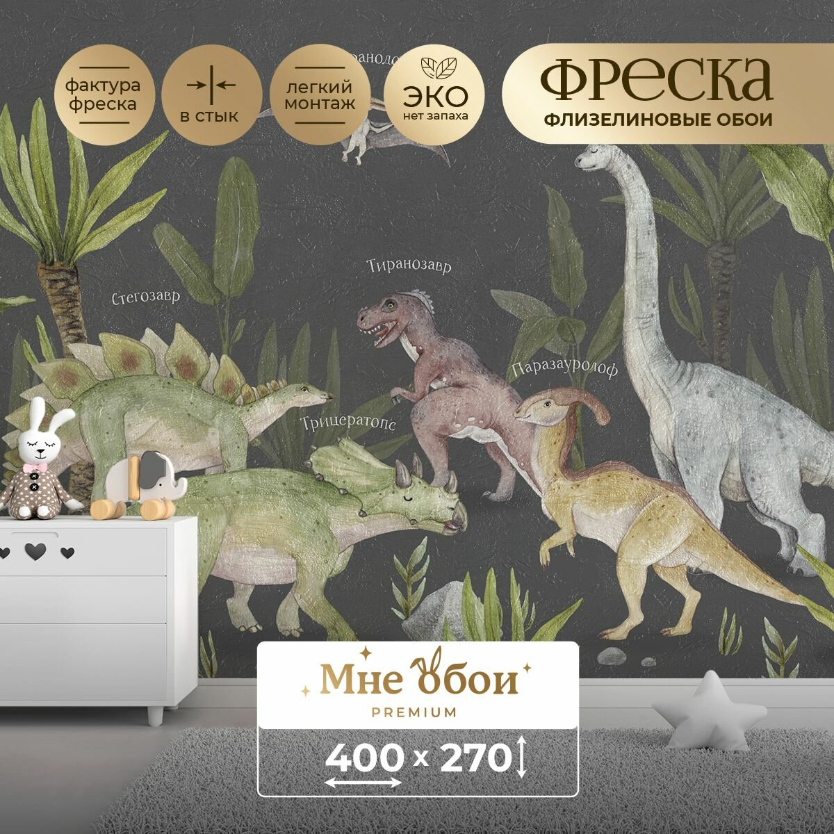 Купить Фреска флизелиновая - детские фотообои "Виды динозавров" 400х270 (ШхВ)