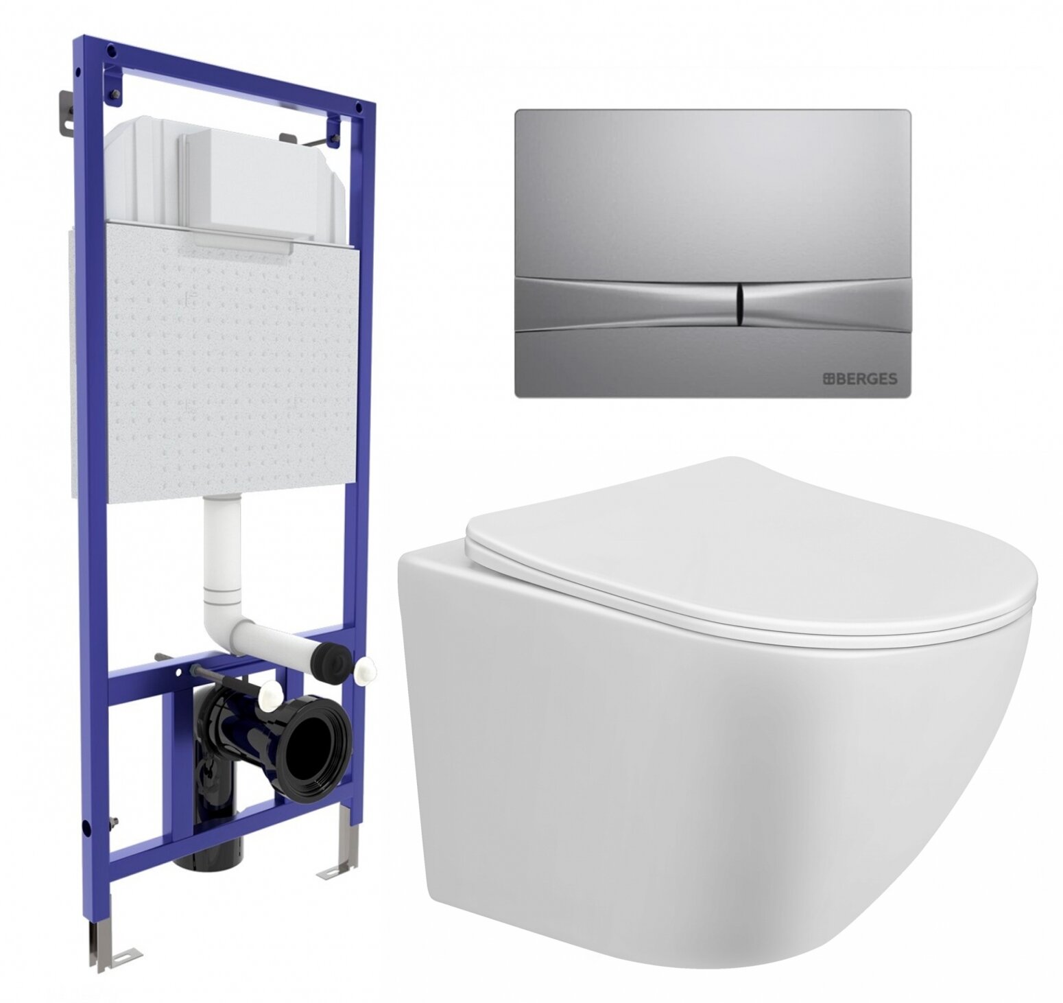 Купить Комплект 3 в 1 инсталляция Berges Wasserhaus Novum 040252 + Унитаз подвесной Taliente Amato AM25010 + кнопка хром матовая