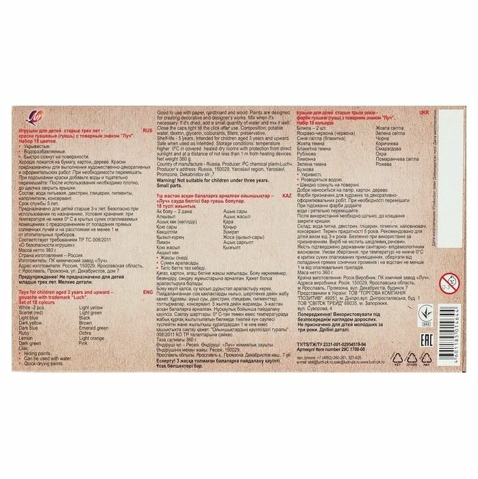 Гуашь в блочной упаковке 18 цветов интересное: