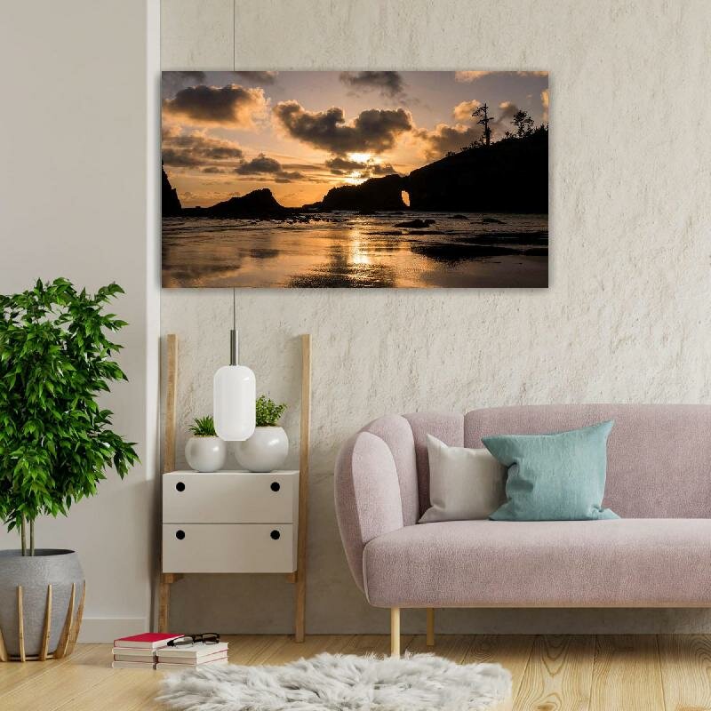 Картина на холсте 60x110 LinxOne "Берег море скалы" интерьерная для дома / на стену / на кухню / с подрамником интересное: