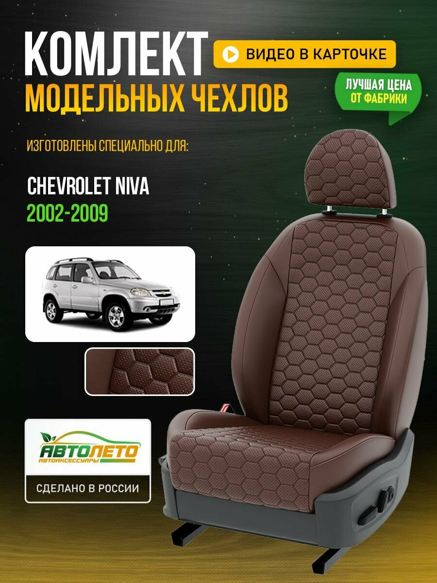 Купить Чехлы для Chevrolet Niva 1 2002-2020 Шоколадный Шоколадный Экокожа соты Авто Лето LA857C142