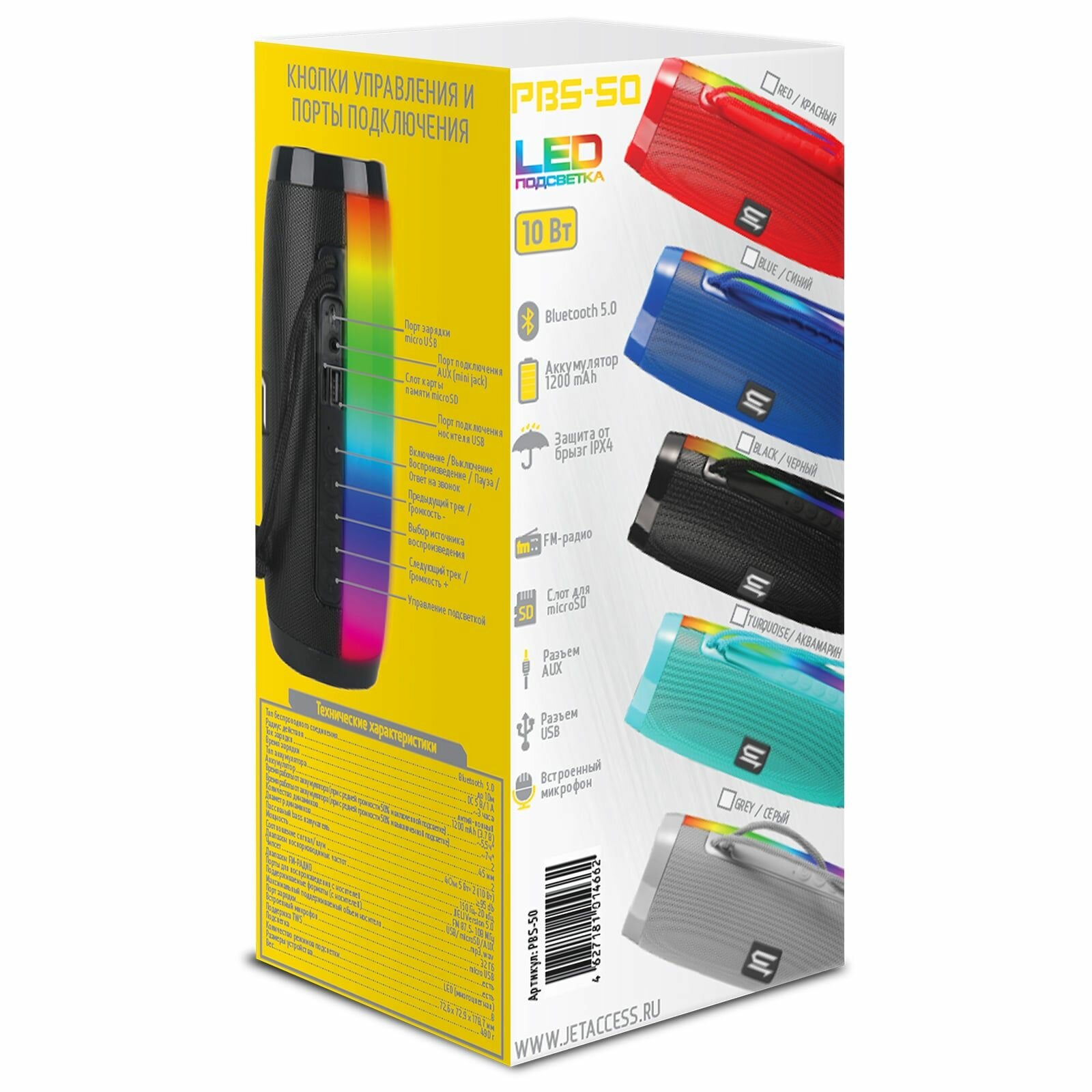 Портативная BLUETOOTH колонка JETACCESS PBS-50 аквамарин (2x5Вт дин., 1200mAh акк.LED подсветка) интересное: