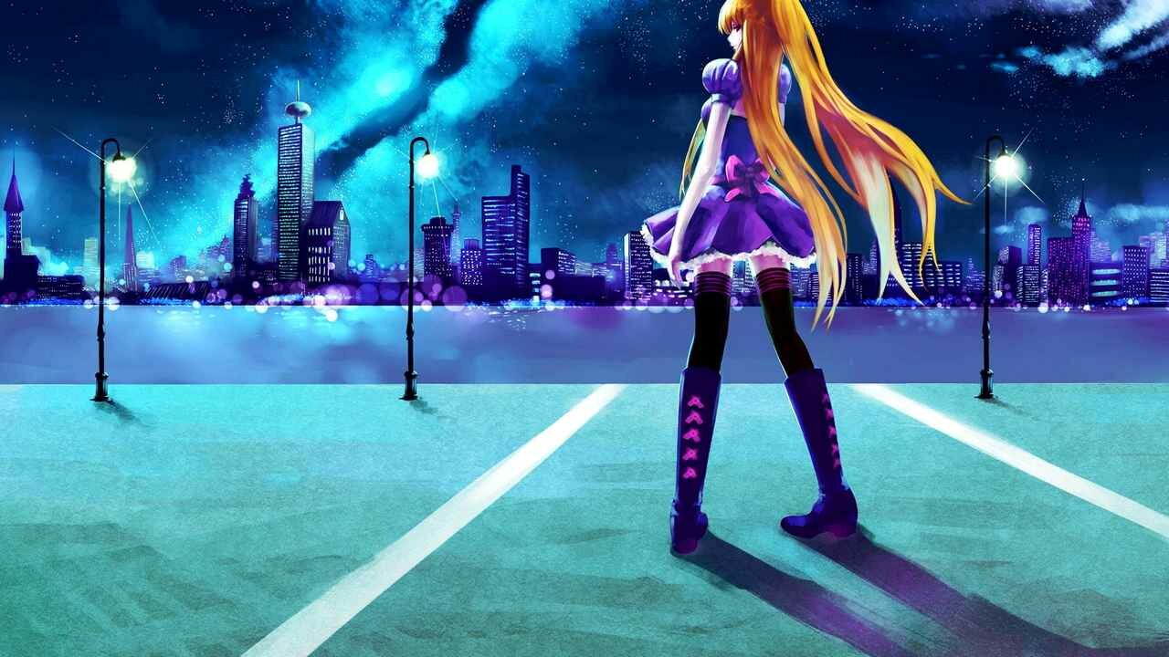 Купить Картина на холсте 60x110 LinxOne "Девушка, фонари, город, вода" интерьерная для дома / на стену / на кухню / с подрамником