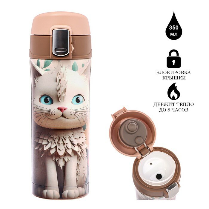 Термокружка, 350 мл, Style, "Котенок", сохраняет тепло до 8 ч 9912152 интересное: