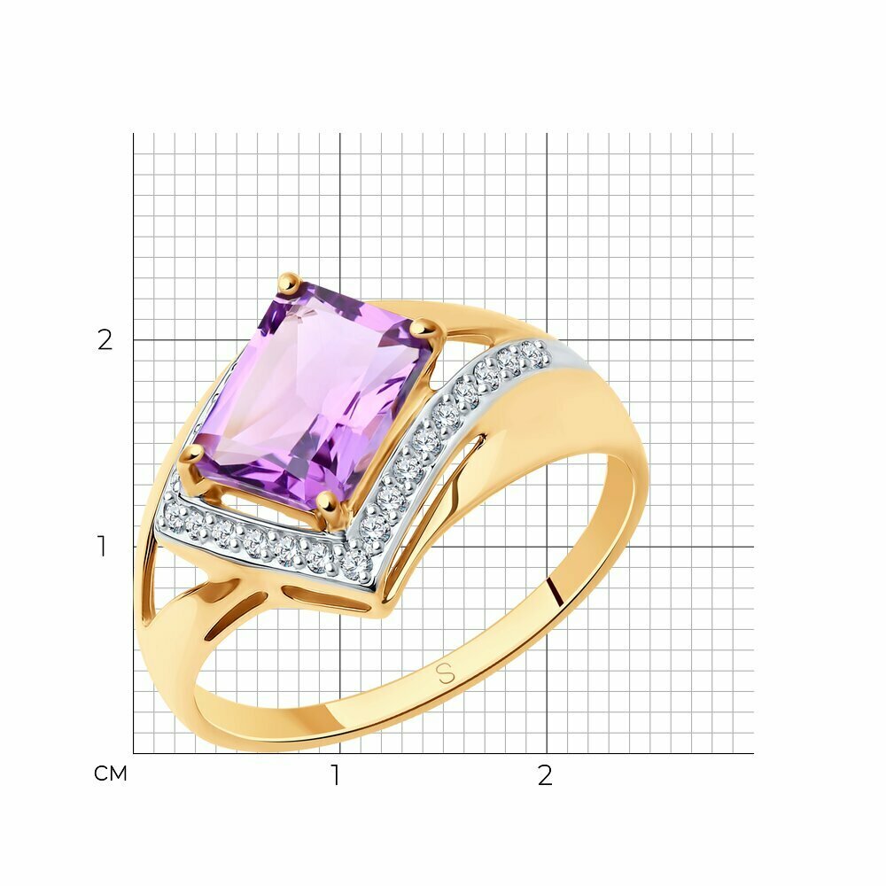 Кольцо SOKOLOV из золота с аметистом и фианитами 715284, размер 17.5 интересное: