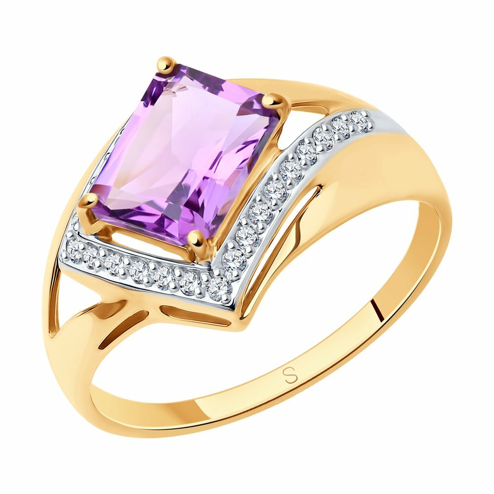 Купить Кольцо SOKOLOV из золота с аметистом и фианитами 715284, размер 17.5