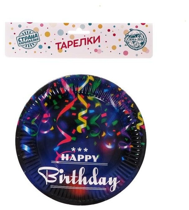 Купить Тарелка бумажная «С Днём Рождения», серпантин, набор 6 шт.