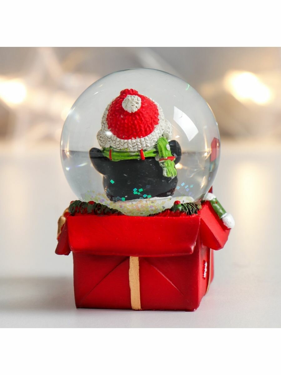 Сувенир полистоун водяной шар Пингвинчик на подарке 4,5х4, интересное: