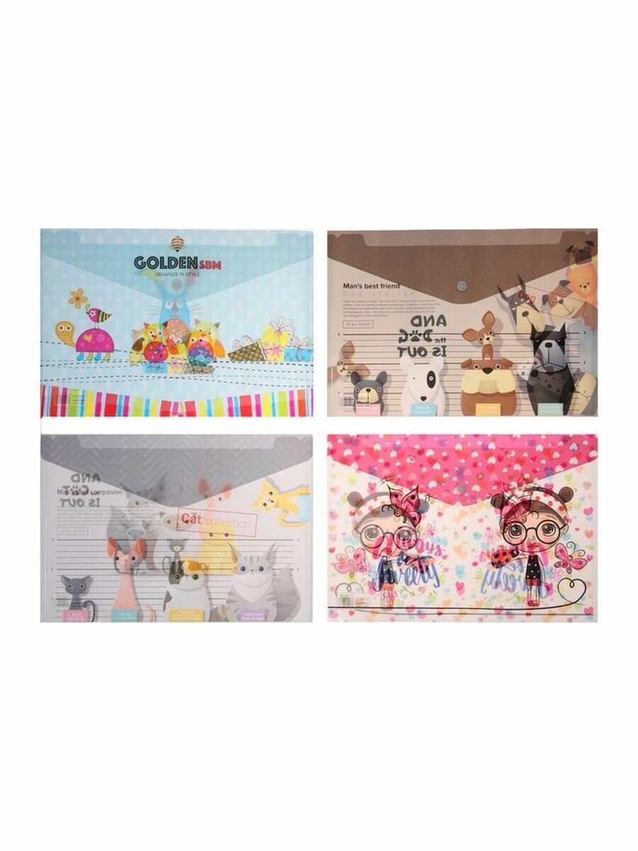 Папка-конверт на кнопке формат А4 150 мкр микс Ассорти интересное: