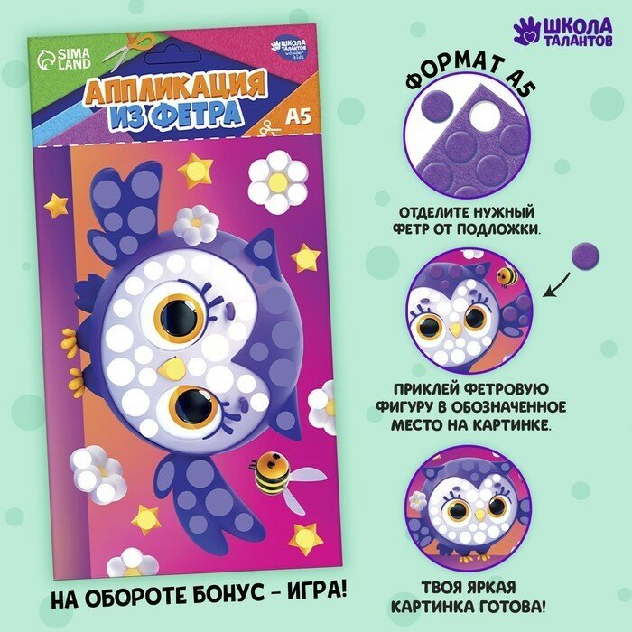 Купить Школа талантов Аппликация из фетра « Совушка»