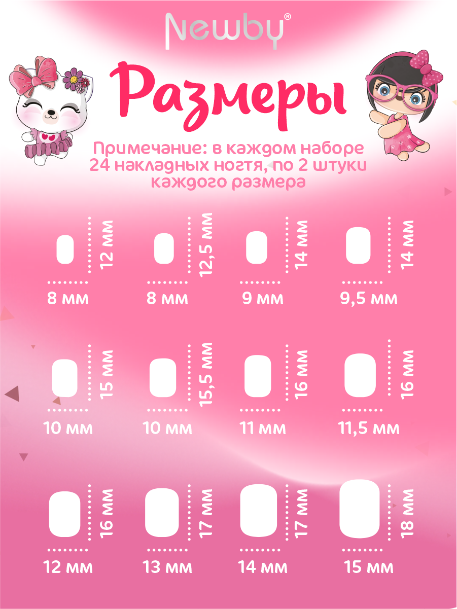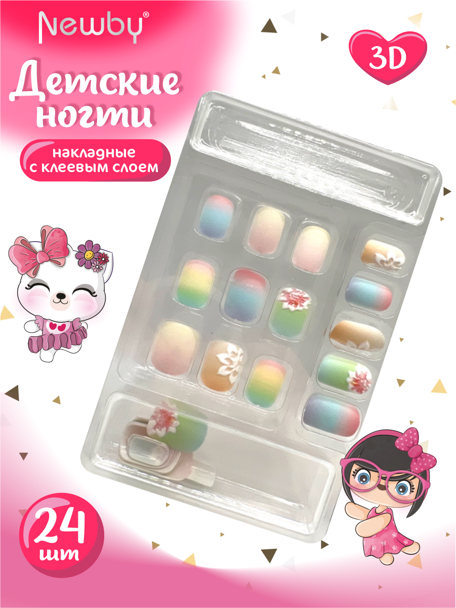 Купить Детские накладные ногти 3D 24 шт. с липким слоем