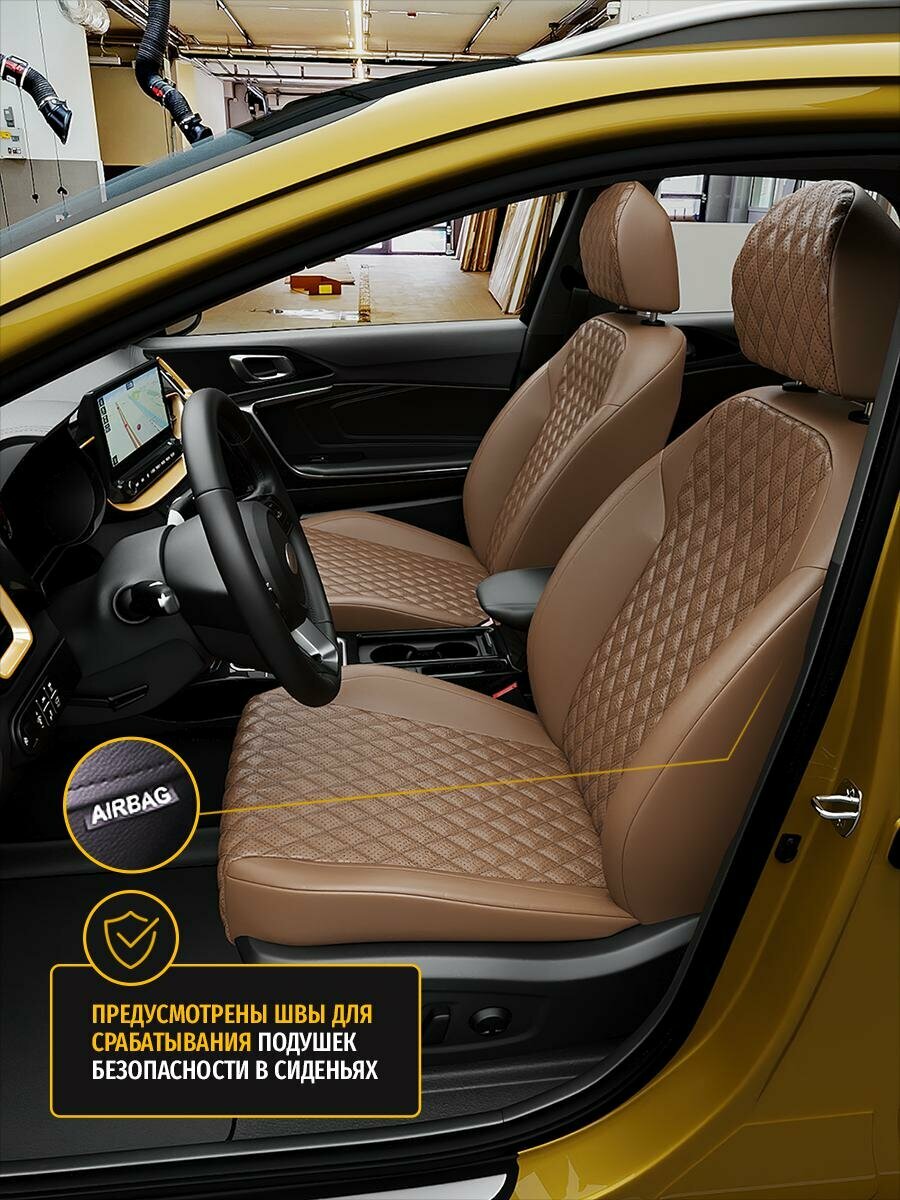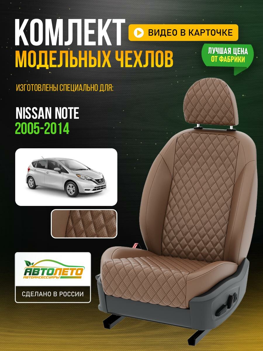 Чехлы для Nissan Note 1 2005-2014 Светло-коричневый Светло-коричневый Экокожа с ромбом и перфорацией Авто Лето LA482C85 интересное: