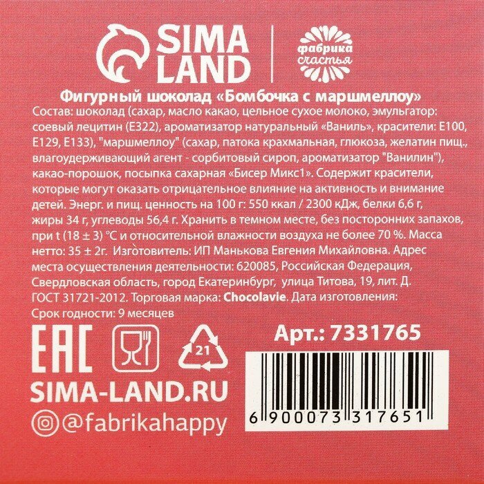 Ниже Вы можете прочитать отзывы на Фабрика счастья Шоколадная бомбочка с маршмеллоу «8 марта», 35 г., ознакомится с подробными характеристиками, посмотреть интересные обзоры и фотографии на Фабрика счастья Шоколадная бомбочка с маршмеллоу «8 марта», 35 г..