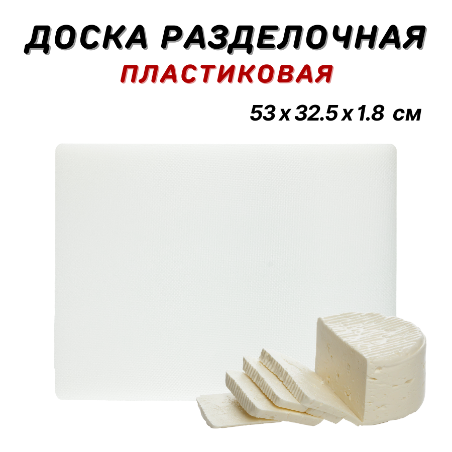 Купить Доска разделочная пластиковая 53х32.5х1.8 см, цвет белый, доска пластиковая профессиональная, разделочная доска из пластика, доска кухонная пластик