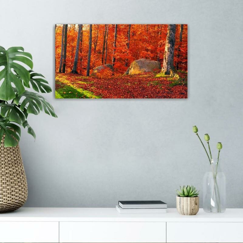 Купить Картина на холсте 60x110 LinxOne "Лес природа Осень Украина" интерьерная для дома / на стену / на кухню / с подрамником