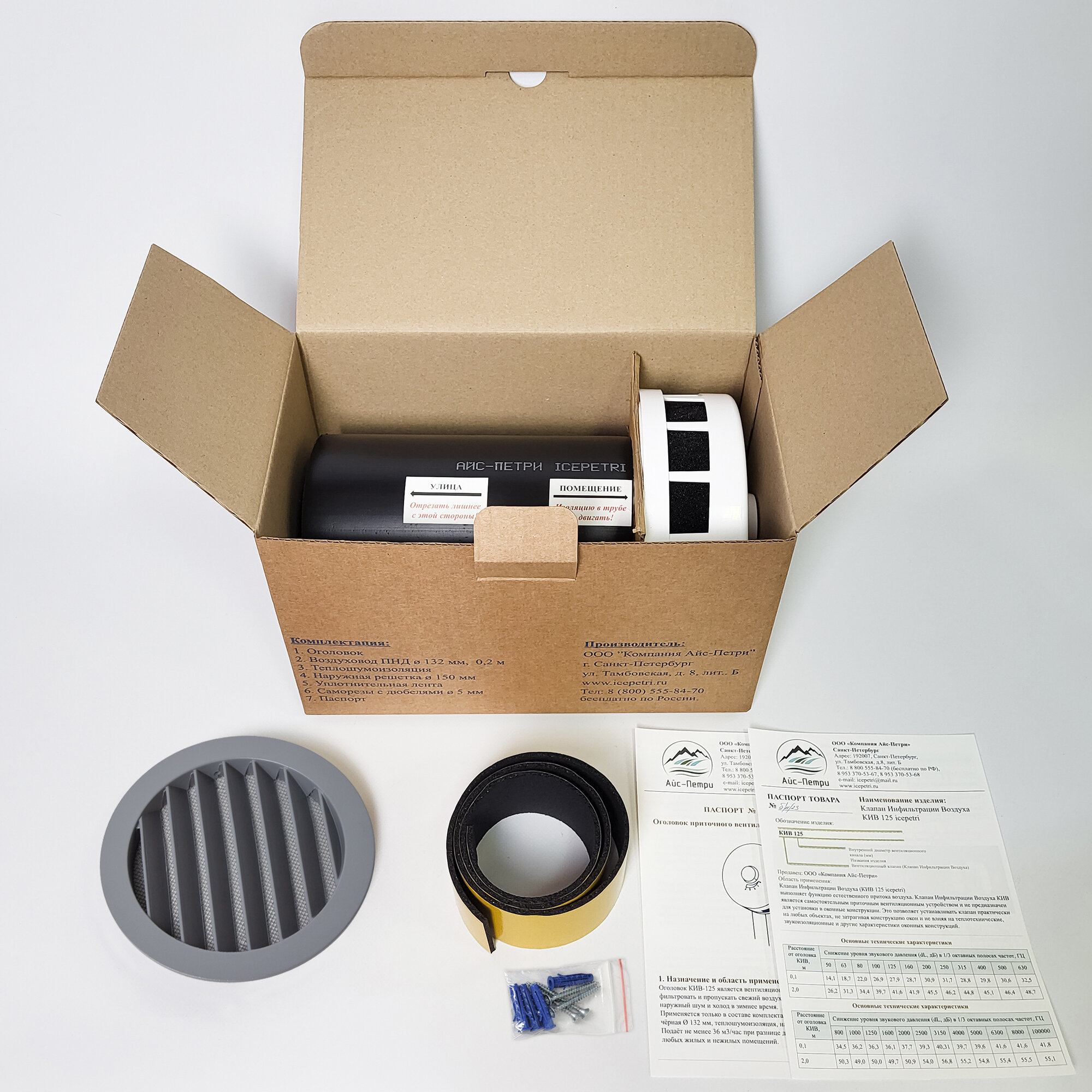 Приточный клапан КИВ-125 icepetri 200мм с к. базальтом и AL. реш. RAL7046 (телегрей 2 матовый) интересное: