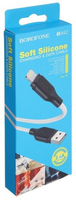 Купить Кабель Borofone BX42, Lightning - USB, 2.4 А, 1 м, TPE оплётка, белый