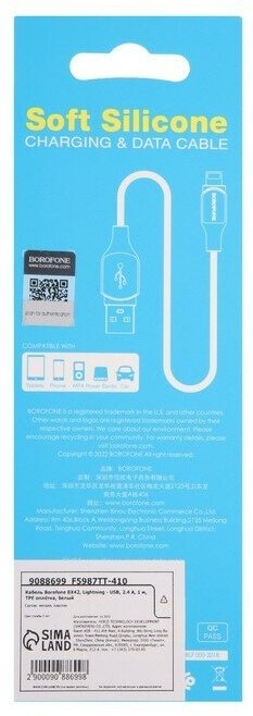 Кабель Borofone BX42, Lightning - USB, 2.4 А, 1 м, TPE оплётка, белый интересное: