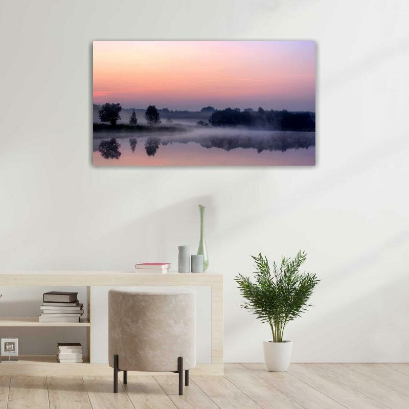 Купить Картина на холсте 60x110 LinxOne "Туман лес пруд Алексин рассвет" интерьерная для дома / на стену / на кухню / с подрамником