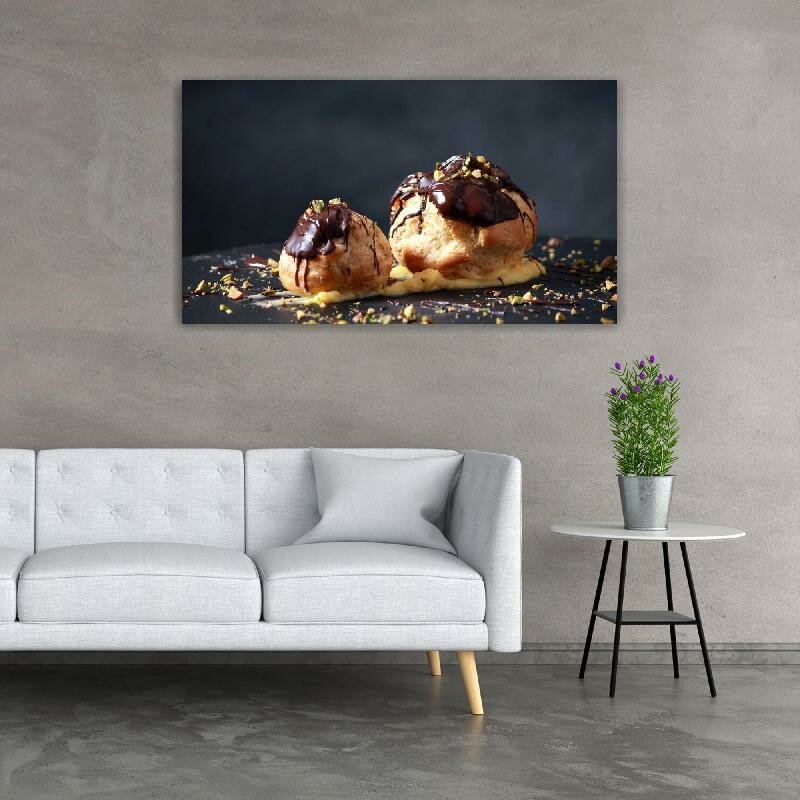 Картина на холсте 60x110 LinxOne "Два заварных пирожных с" интерьерная для дома / на стену / на кухню / с подрамником интересное: