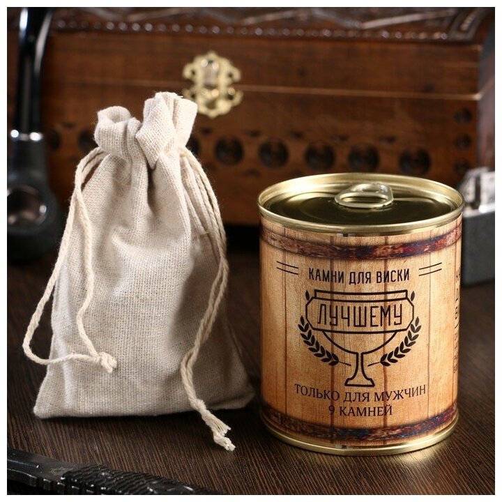 Дарим Красиво Набор камней для виски "Настоящему мужчине. Бочка", в консервной банке, 9 шт. интересное: