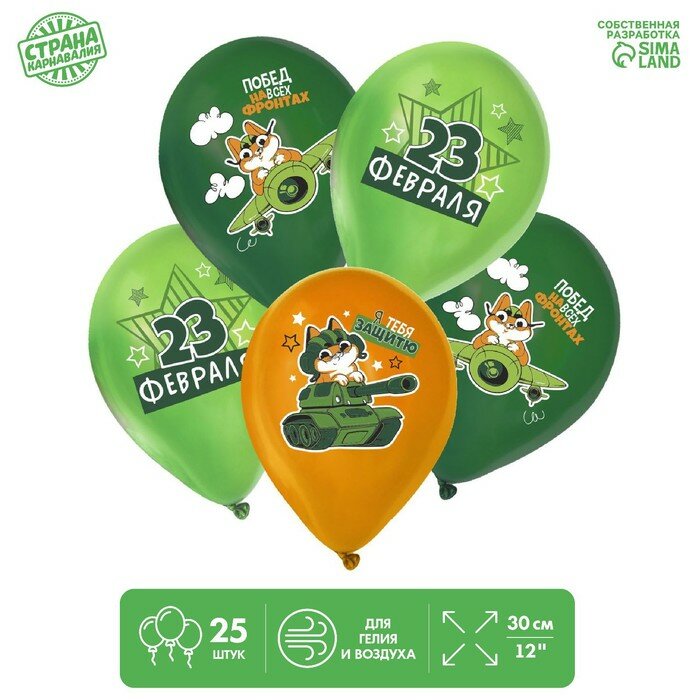 Шар латексный 12" "С 23 февраля",побед , 1 ст. цв., Пастель микс, набор 25 шт. интересное: