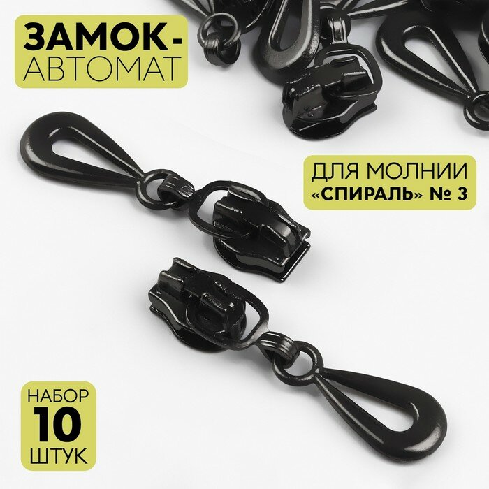 Замок автоматический для молнии «Спираль», №3, 10 шт, цвет чёрный никель интересное: