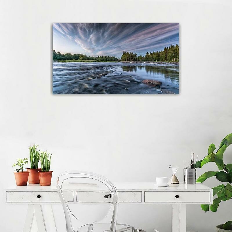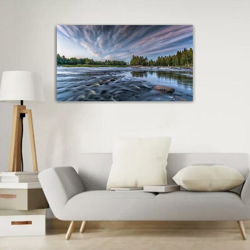 Купить Картина на холсте 60x110 LinxOne "Лес река облака Финляндия" интерьерная для дома / на стену / на кухню / с подрамником