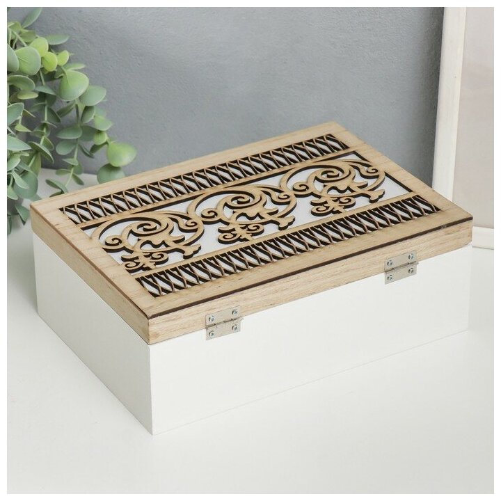 Шкатулка дерево с делениями "Ажурная резьба" белая 16,7х23,8х8 см интересное: