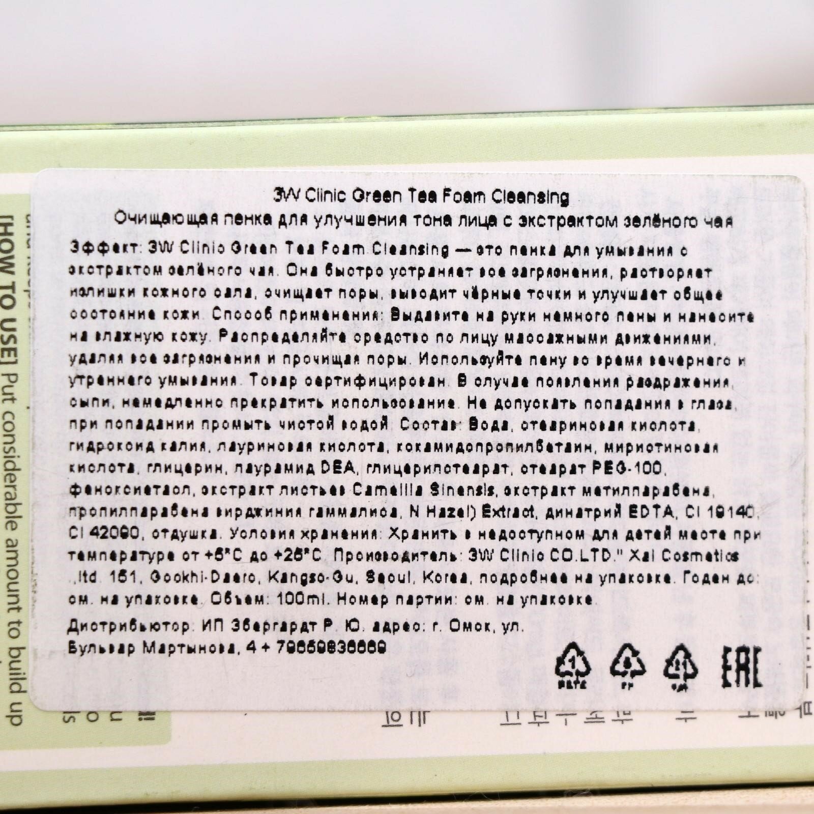 Очищающая пенка для умывания 3W CLINIC, зелёный чай, 100 мл интересное: