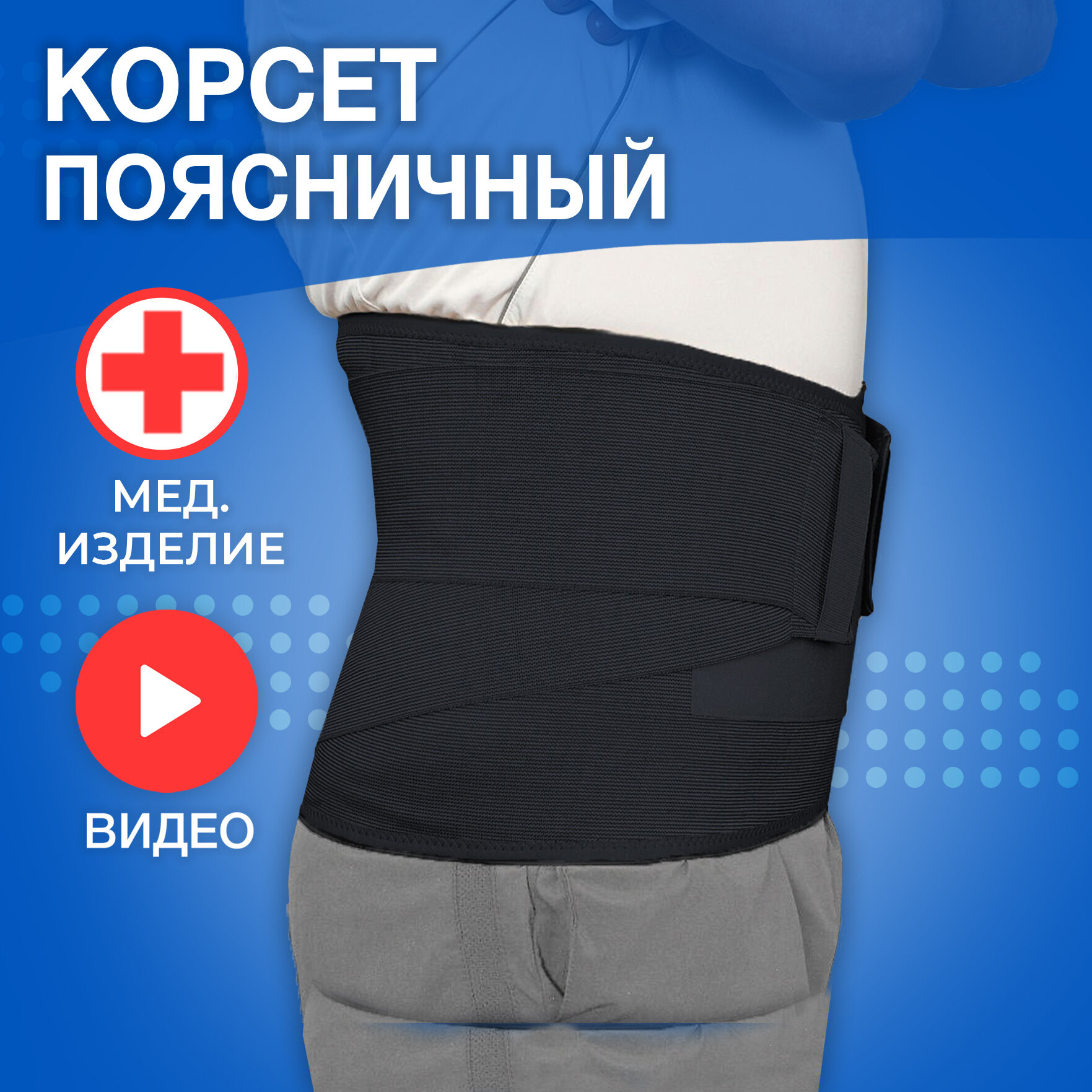 Купить Бандаж брюшной поддерживающий усиленный / Пояс для спины / Корсет ортопедический поясничный. Черный, 1 размер.