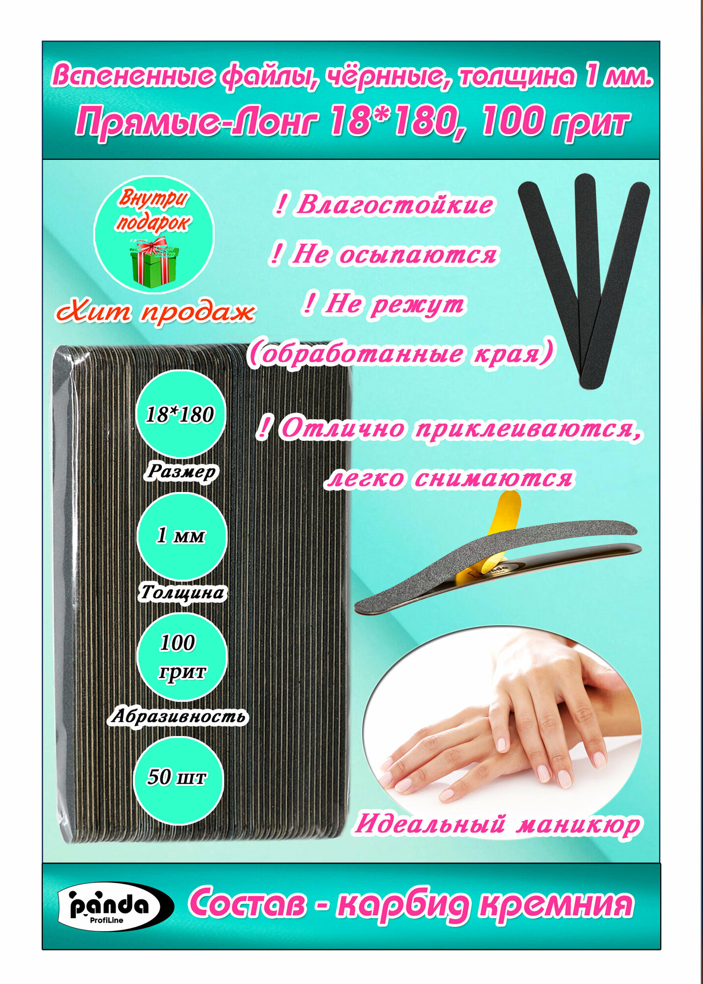 Вспененные файлы 50шт,черные,100 грит,Прямые-Лонг 18*180 интересное: