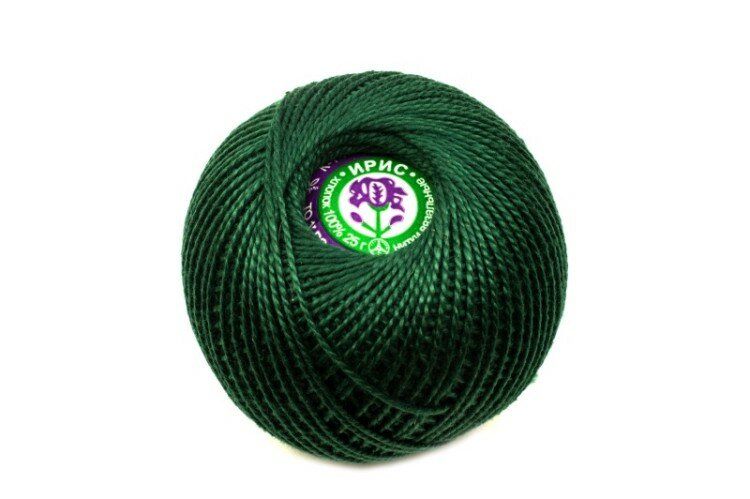 Нитки Ирис цвет 3807 темно-зеленый, 150м/25г, хлопок 100%, 1шт интересное: