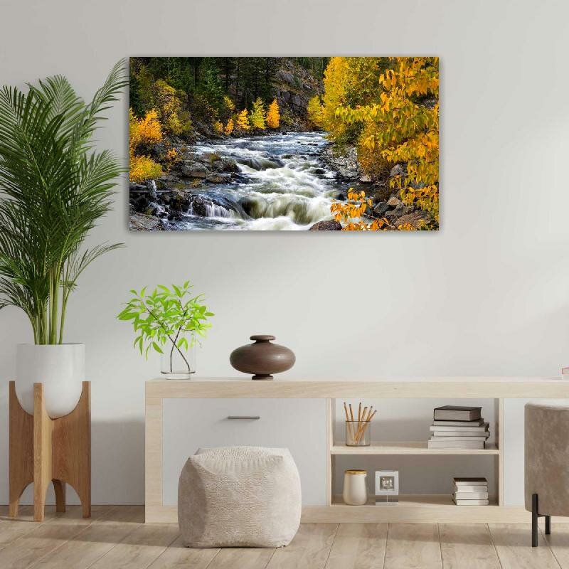 Картина на холсте 60x110 LinxOne "Деревья река штат вашингтон осень" интерьерная для дома / на стену / на кухню / с подрамником интересное: