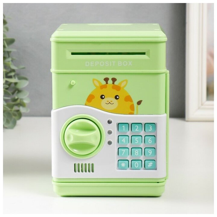 Купить Копилка пластик "Сейф. Жирафик" кодовый замок, звук АА зелёный 13х12х19 см