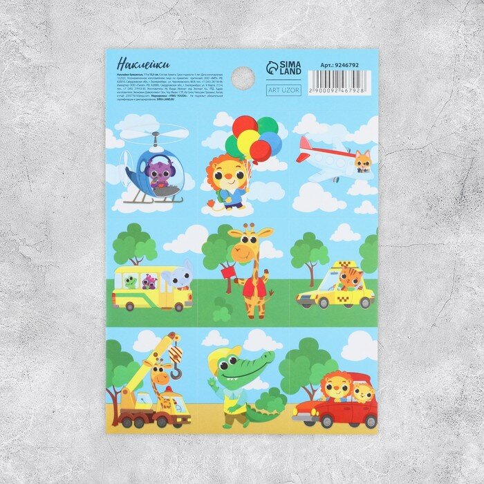 Купить Наклейки бумажные «Зверята за рулём» , 11 × 15,5 см