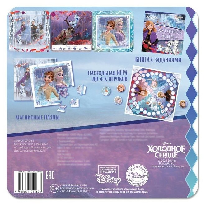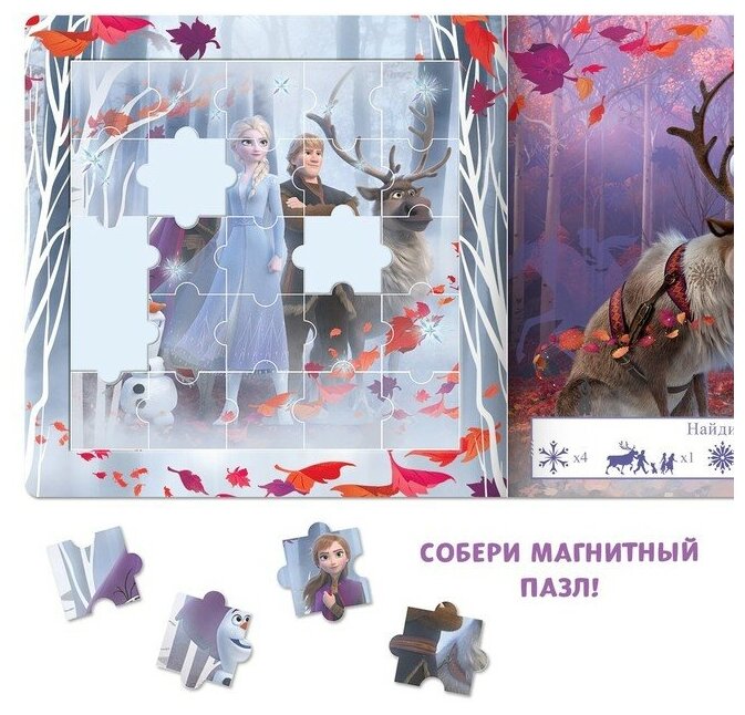 Подарочный набор: Магнитная книга с заданиями «Создай чудо» + пазлы + магнитная игра, Холодное сердце интересное: