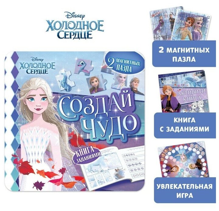Купить Подарочный набор: Магнитная книга с заданиями «Создай чудо» + пазлы + магнитная игра, Холодное сердце