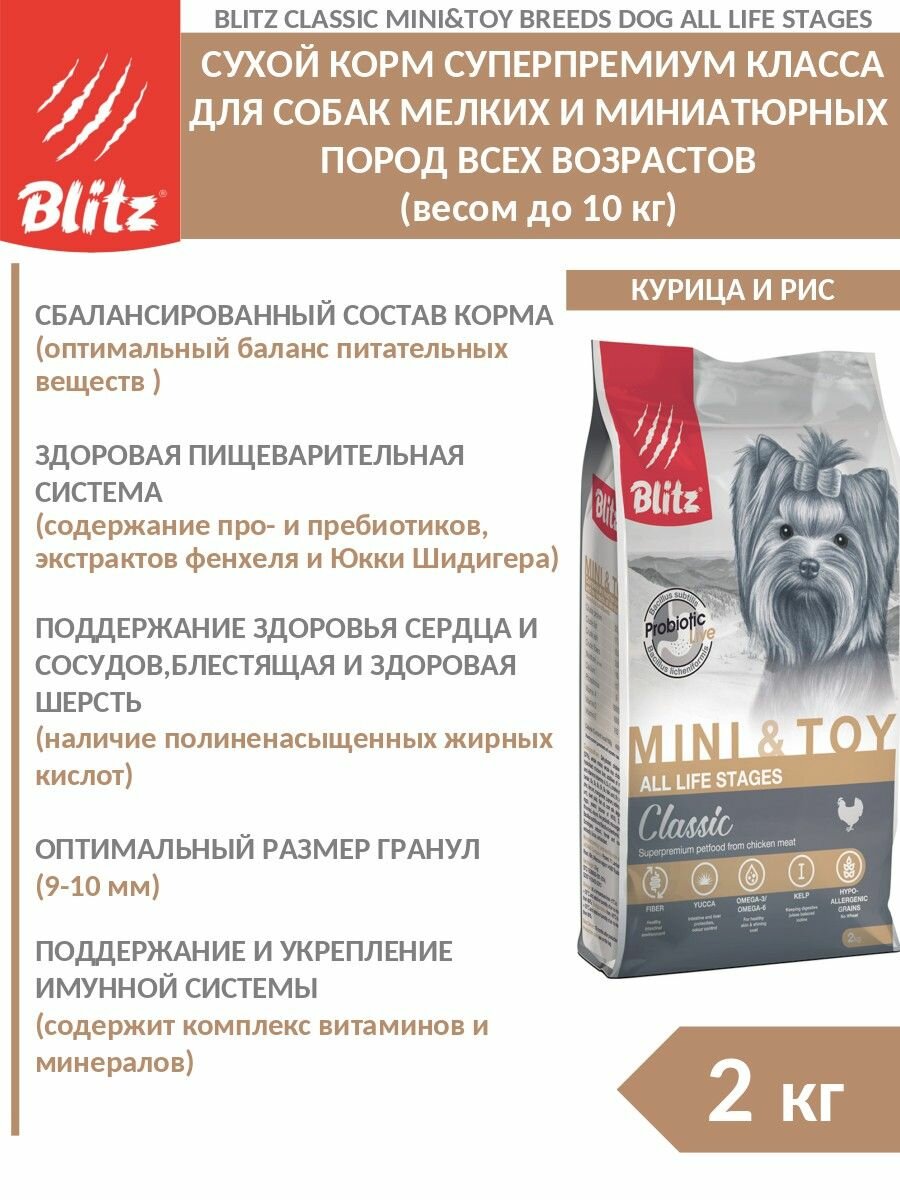 Blitz Classic Mini & Toy Breeds Dog All Life Stages для собак мелких и миниатюрных пород всех возрастов, курица 2 кг