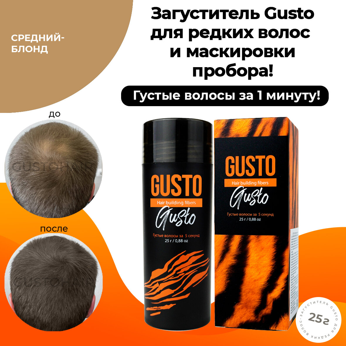 GUSTO Загуститель для волос (средний-блондин), 25 г интересное: