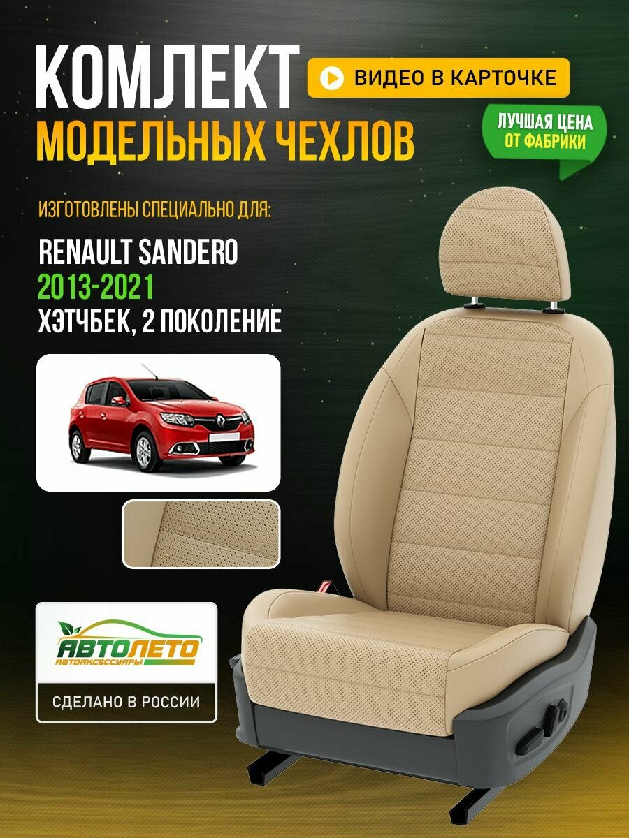 Чехлы для Renault Sandero 2 2013-2021 Бежевый Бежевый Экокожа с перфорацией Авто Лето LA353C58 интересное: