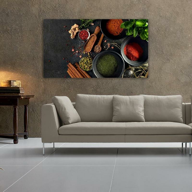 Картина на холсте 60x110 LinxOne "Корица имбирь паприка перец" интерьерная для дома / на стену / на кухню / с подрамником интересное: