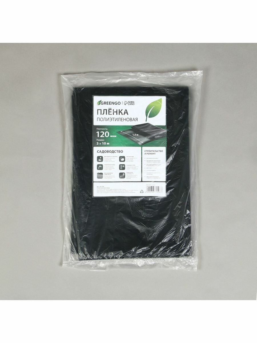 Плёнка полиэтиленовая, техническая, для мульчирования, толщина 120 мкм, 10 × 3 м, рукав (2 × 1,5 м), чёрная, 2 сорт, Эконом 50 % интересное: