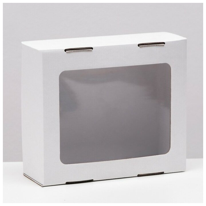 Купить Коробка сборная, крышка-дно "белая" с окном 21х18х8 см