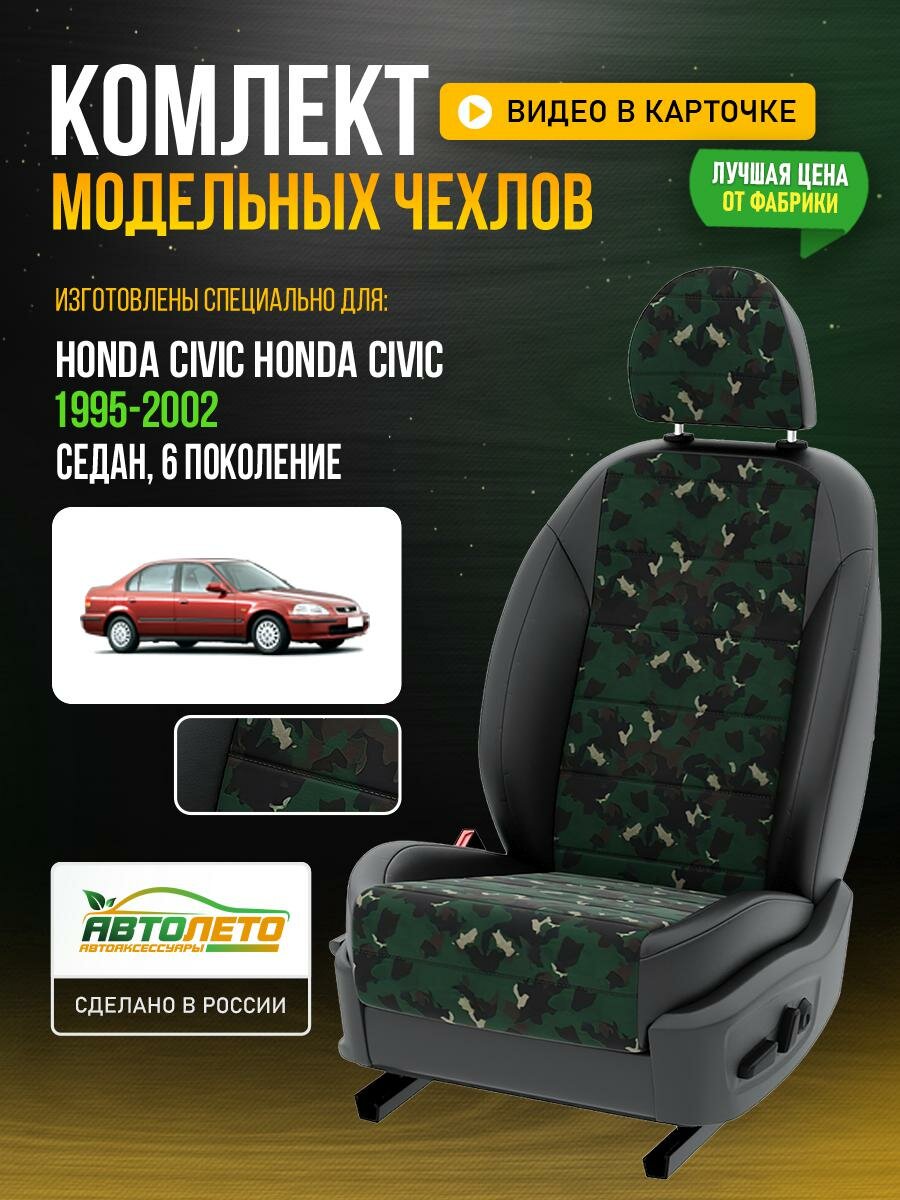 Купить Чехлы для Honda Civic 6 1991-2016 седан Камуфляж Черный Брезент Авто Лето LA725C36