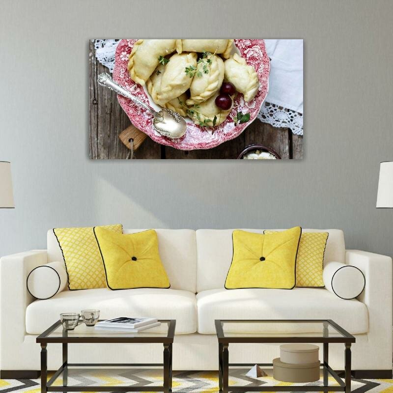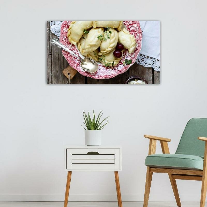 Картина на холсте 60x110 LinxOne "Вишни вареники творог ложка" интерьерная для дома / на стену / на кухню / с подрамником интересное: