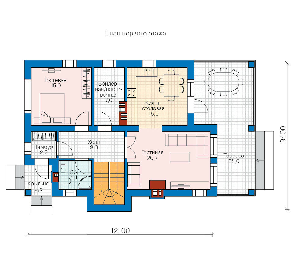 Купить 58-45-Catalog-Plans - Проект двухэтажного дома из газобетона с террасой