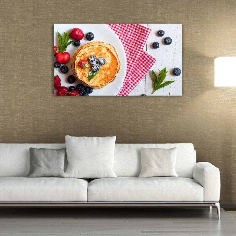 Картина на холсте 60x110 LinxOne "Блины Черника Ягоды Пища" интерьерная для дома / на стену / на кухню / с подрамником интересное: