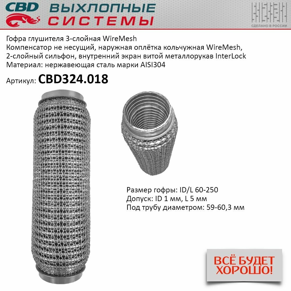 Гофра приемной трубы d-60 L-250 (трехслойная) (кольчуга) компенсационная CBD CBD324.018 интересное:
