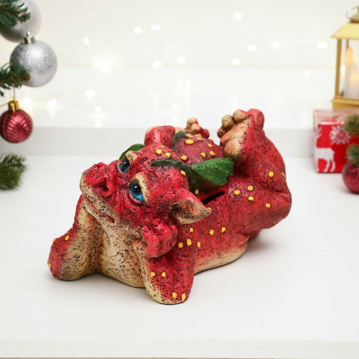 Купить Хорошие сувениры Копилка "Дракончик мечтатель" красная, 28х17,5х13см